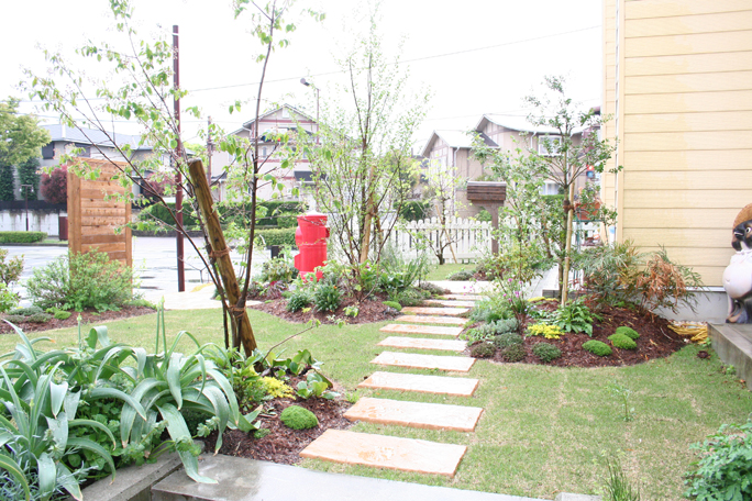 No.064 枕木と植物のコンビネーションが素敵な階段