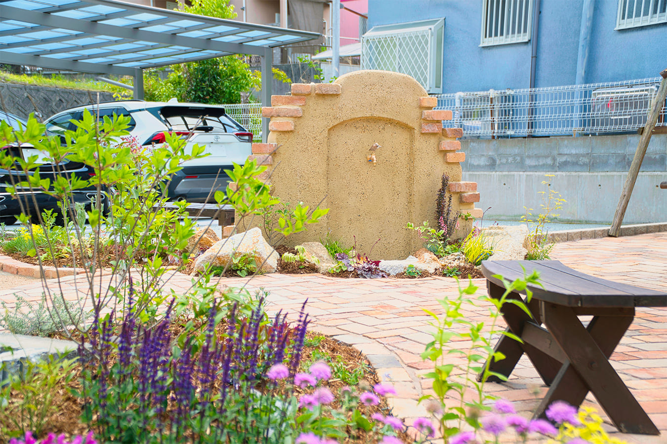 ・タイル貼り・レンガ敷き・ウッドデッキなどのテラス、見栄えもお庭に合うようにお選びいただけます。