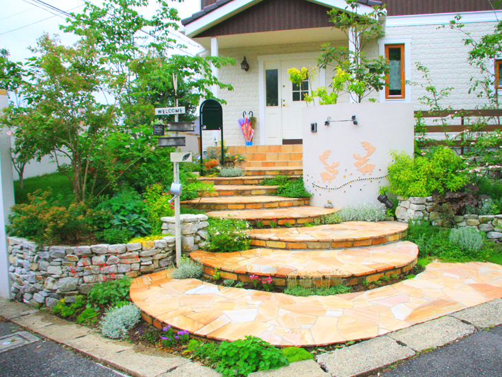 オープン外構のメリットは、なんといってもその解放感。 狭い敷地でも圧迫感を感じさせず、広がりを与えることができます。また道行く人との会話がはずむ等、近隣とのコミュニケーションが円滑になる利点もあります。 前面道路との境にロックガーデンを設けたり、インターロッキングなどで敷地の境界を示すとおしゃれな雰囲気に。 塀などの囲いが無いので日差しをたくさん取り入れ、風通しもよいというメリットがあります。 また、フェンスや門扉など、高価になりがちな建材をあまり使用しないので工事価格を抑えることができます。 外からの侵入は容易ですが、外から死角ができないことで逆に防犯性が高まる場合もあるともいわれています。