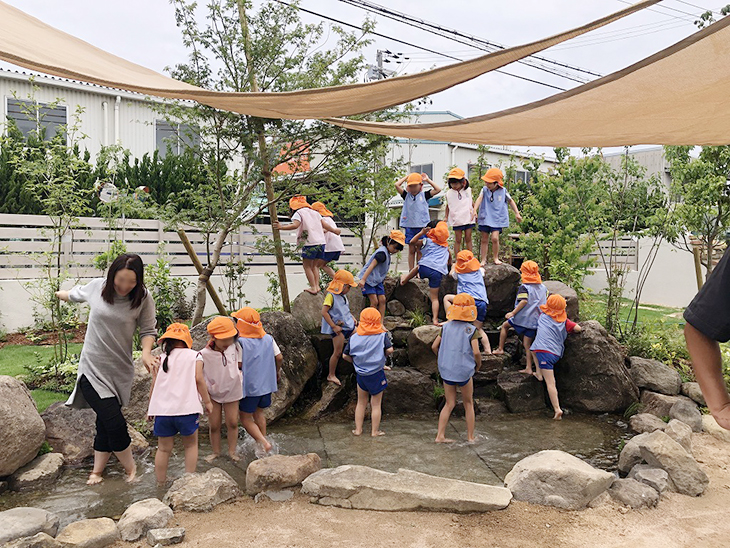 『「伸びようとする芽」を引き出し、心豊かにたくましく生きるこどもの育成』という園の教育・保育理念に沿った楽しいお庭に、子どもたちの元気な声が響き渡っていました。