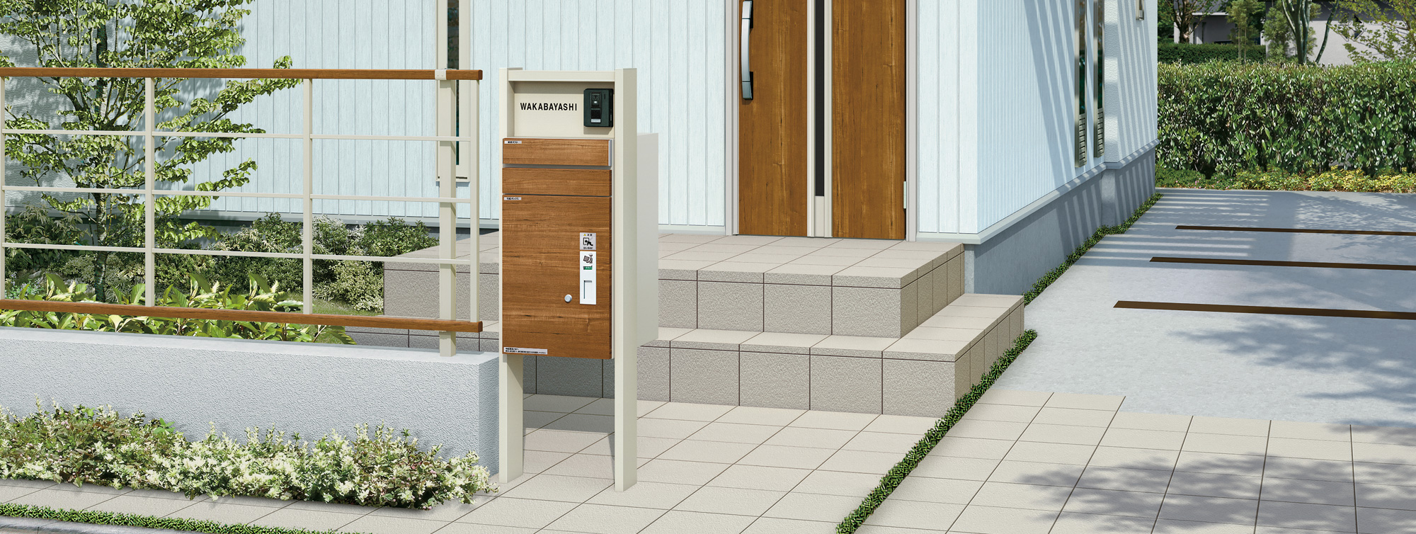 YKK の玄関ドア用、スマートコントロールキーと同一のカードキーで施錠、解錠できる宅配ボックスです。