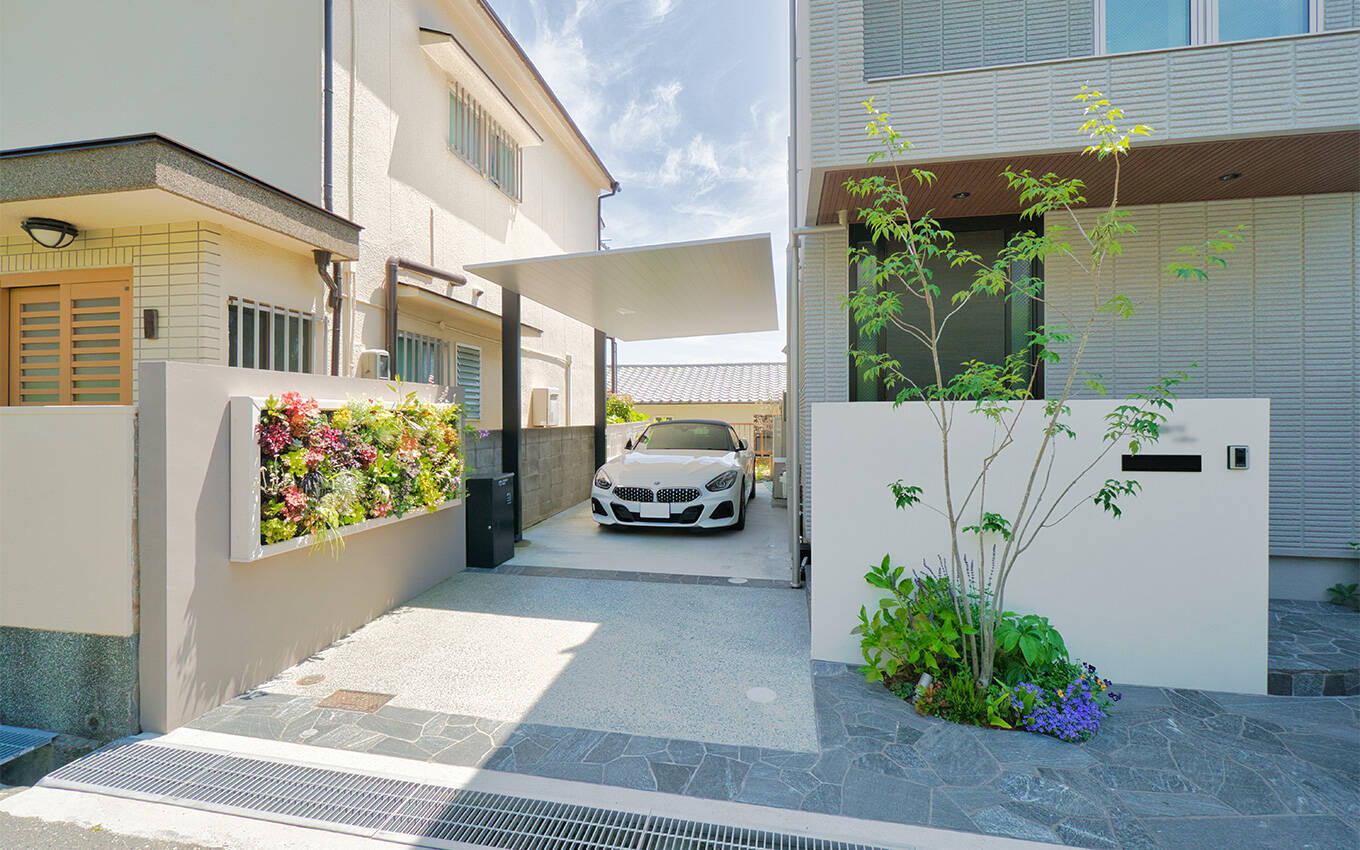神戸の海を一望できるロケーション抜群の便利な土地に、ヘーベルハウスで新築された施主様。「限られたスペースでも植栽を楽しみたい」とご希望でした。