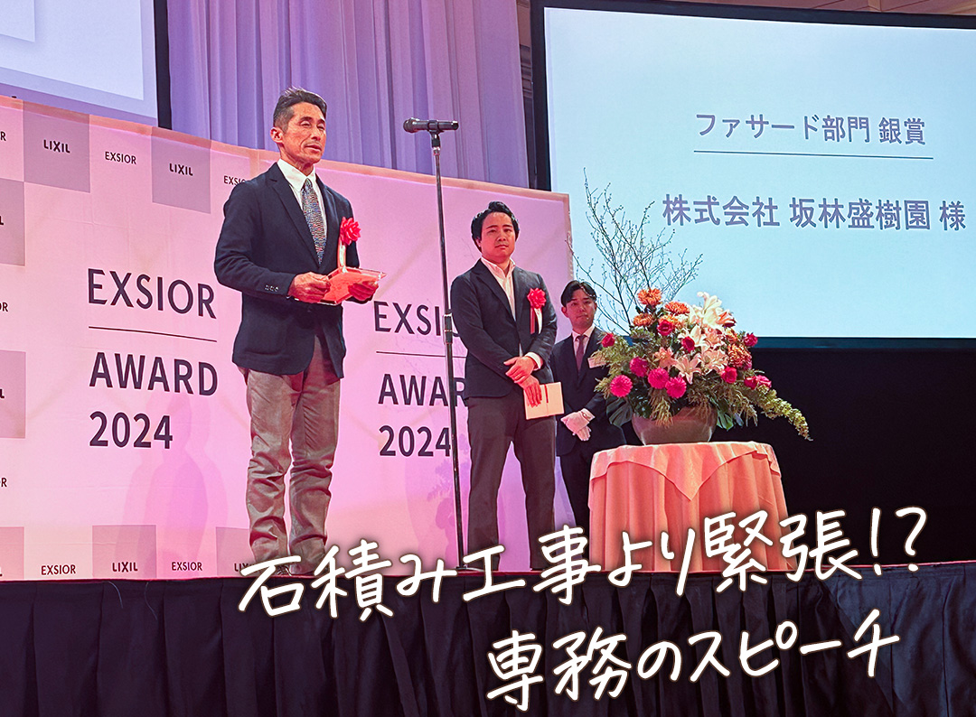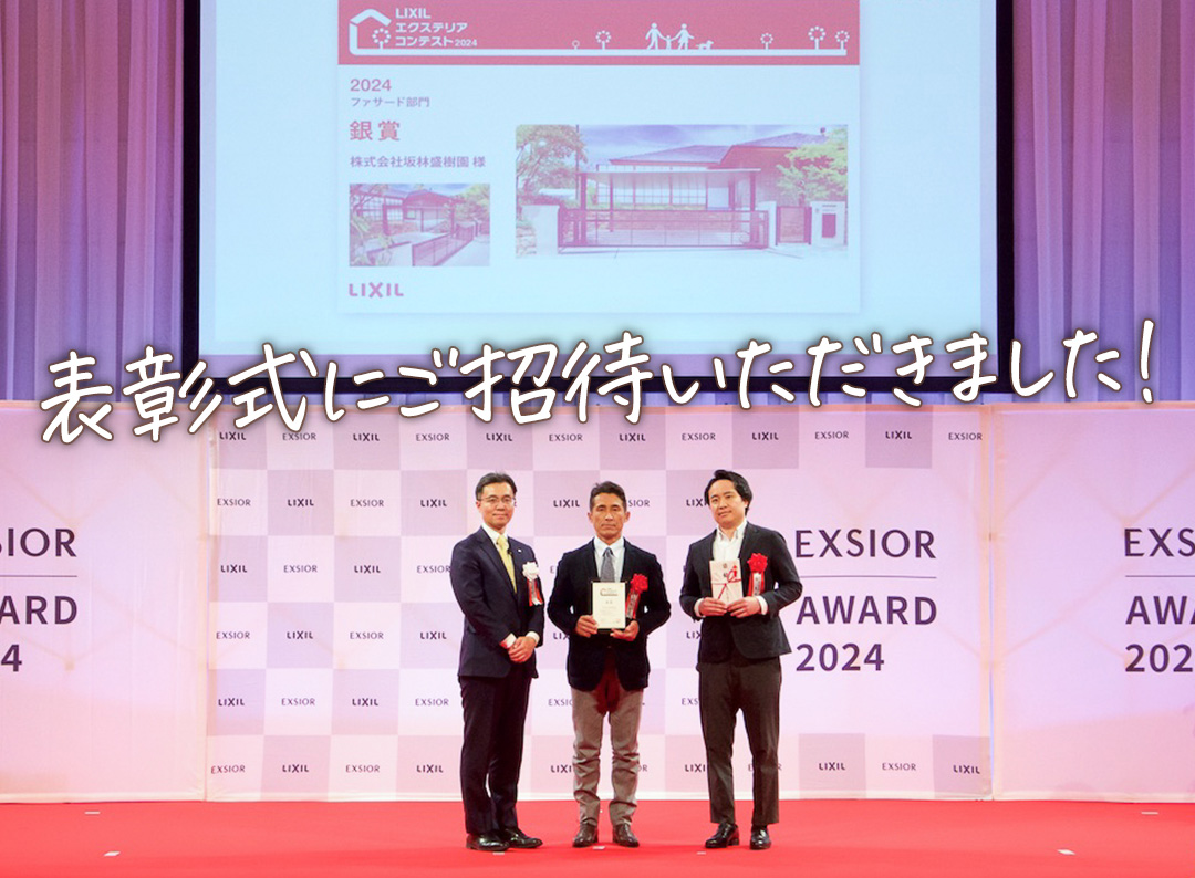 「LIXILエクステリアコンテスト2024 ファザード部門」において弊社の施工事例『雨が小川になる、緑と自然石の趣あるお庭』(芦屋市)が銀賞を受賞し、その表彰式に専務と営業スタッフが参加いたしました!