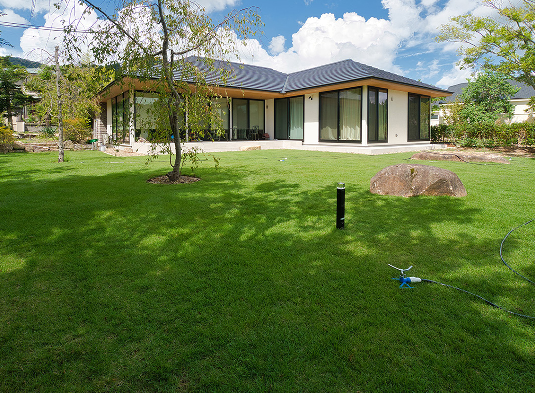 そして、芝生でのびのびと過ごしたり、その管理で体を動かしたりと、心身ともに健やかに、ご家族が笑顔で暮らしていただける。