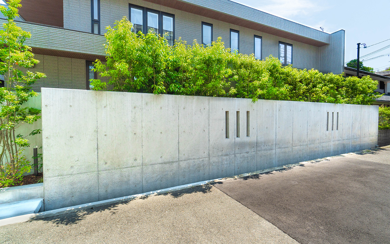 5.コンクリート打ちっぱなし+植栽で隙なし!家族の安心を守る目隠し
