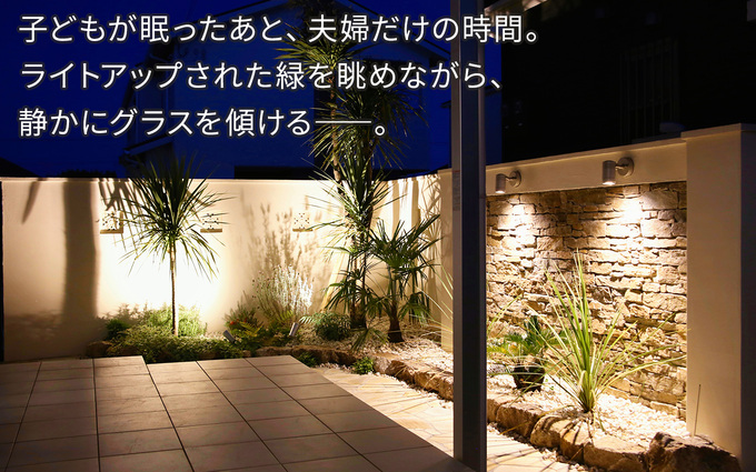 子どもが眠ったあとのお庭時間は、大人だけのお楽しみ。