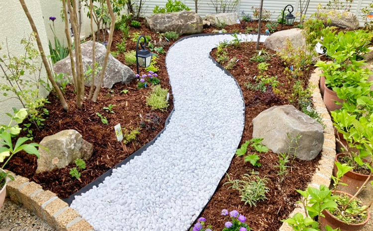 敷地が広いと外構プランの選択肢が増える分、エリアわけやデザイン次第で景観や使い勝手が大きく変わります。そのため、見た目や生活動線を総合的に考えた詳細な検討が必要になります。今回はお子様がお庭で楽しく過ごし健やかに成長されるよう、食育につながる家庭菜園エリア、裸足で駆け回れる天然芝エリア、そして砂遊びエリアなどを取り入れ、日常のさまざまなシーンを豊かにする外構をご提案。お客様のお好みに合わせて、外構全体を弊社の得意とする明るく柔らかな雰囲気でコーディネートしました。