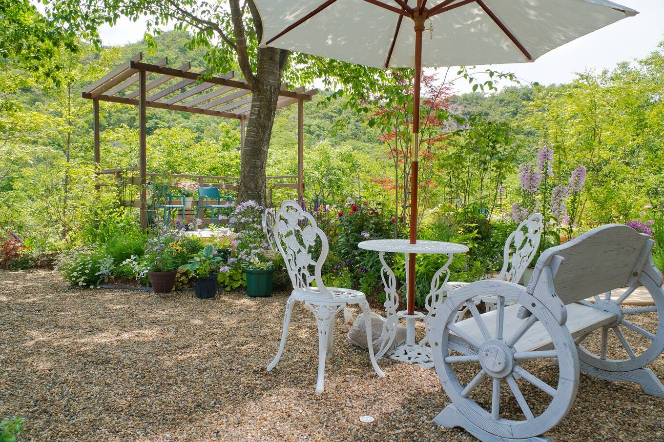 伸び放題だった木々を整え、植物を植え、絶妙なバランスに仕上がったお庭。