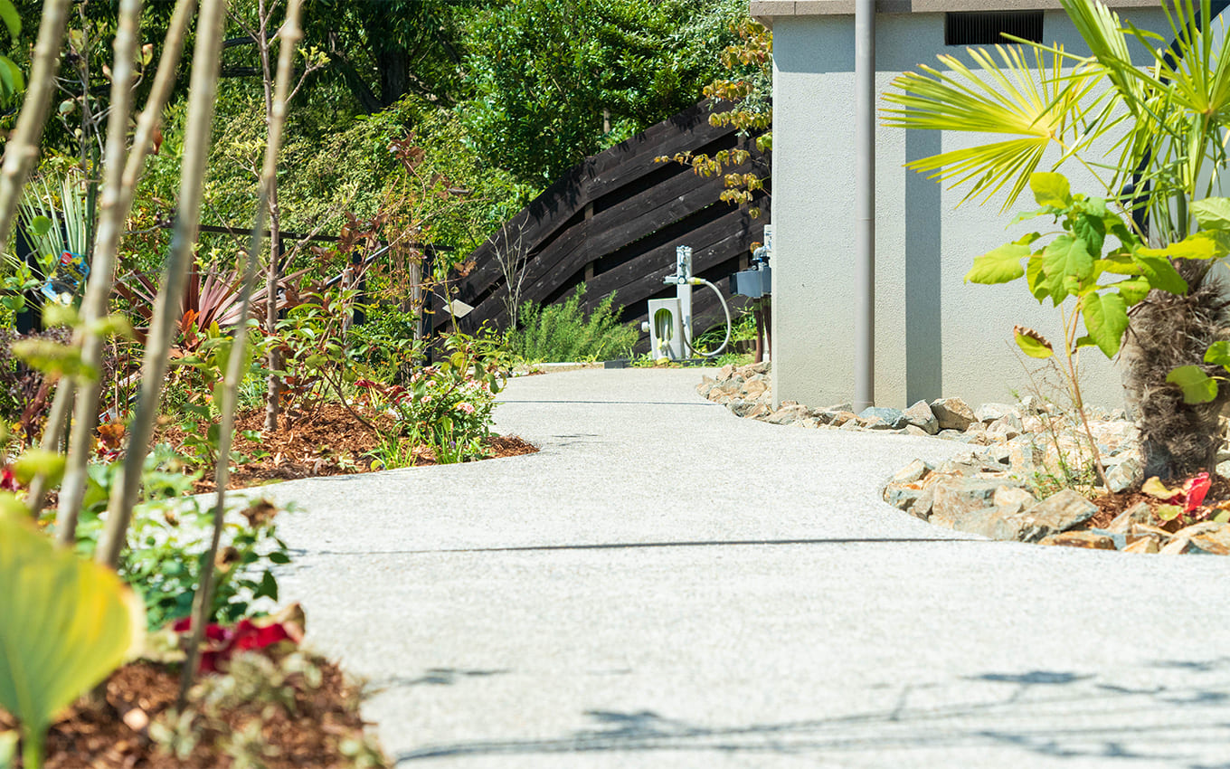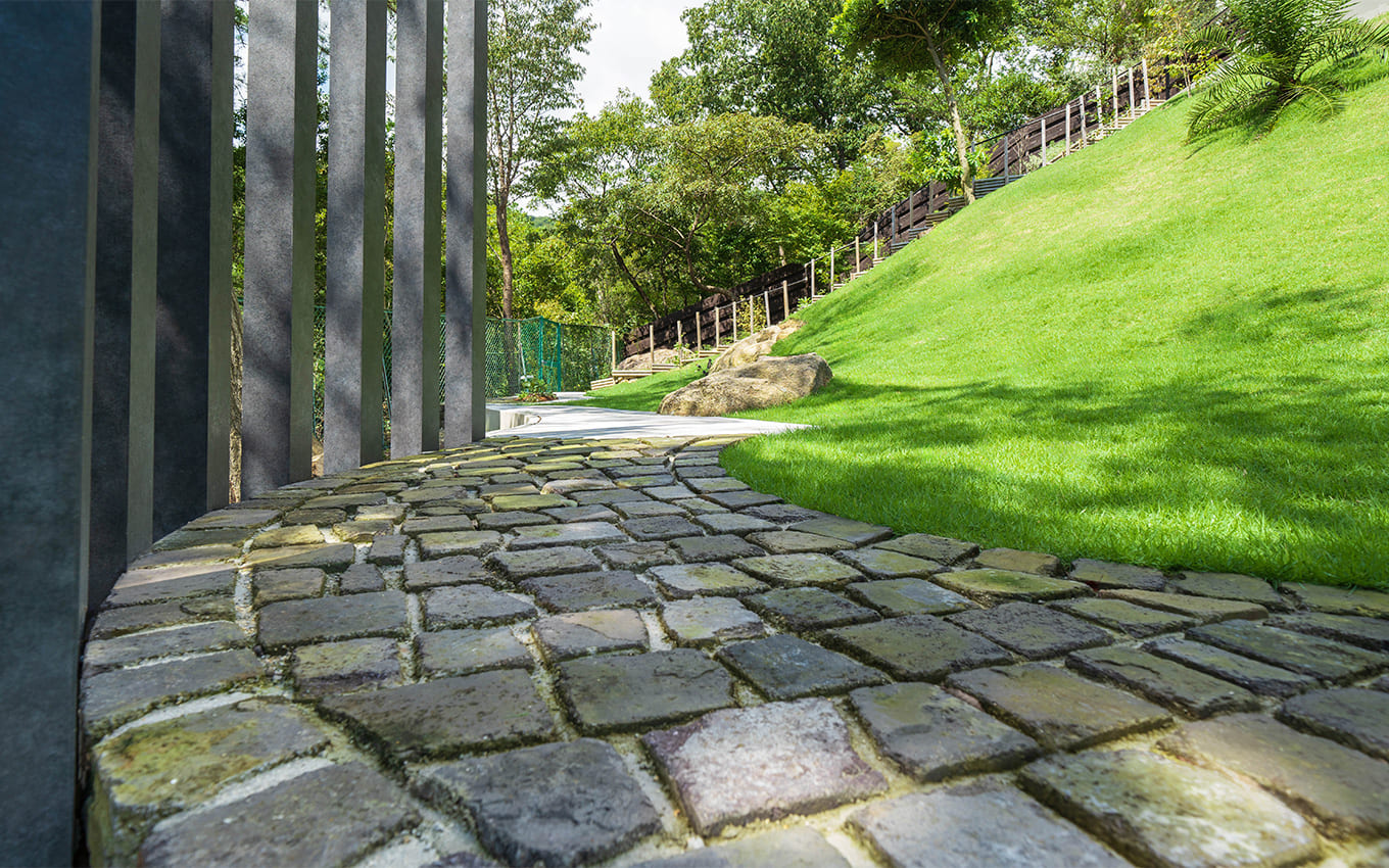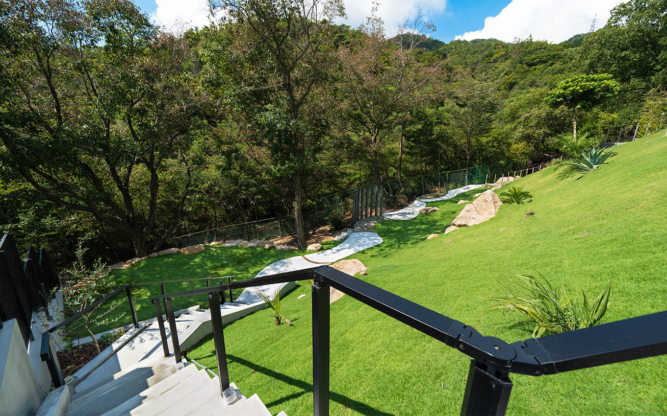 また、広い斜面部分については、自然を好まれる施主様のご希望を受け、芝生でやさしく覆いました。景観を整えるだけでなく、愛犬がのびのびと走り回れる、安心感のある空間へと生まれ変わっています。