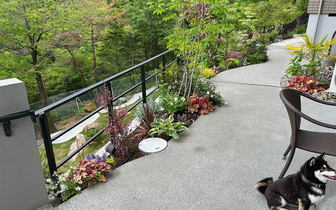 外構工事 斜面・法面活用 目を背けていた斜面が、愛犬と一緒に景色を楽しめる癒し空間に フィーリングガーデン メイン写真