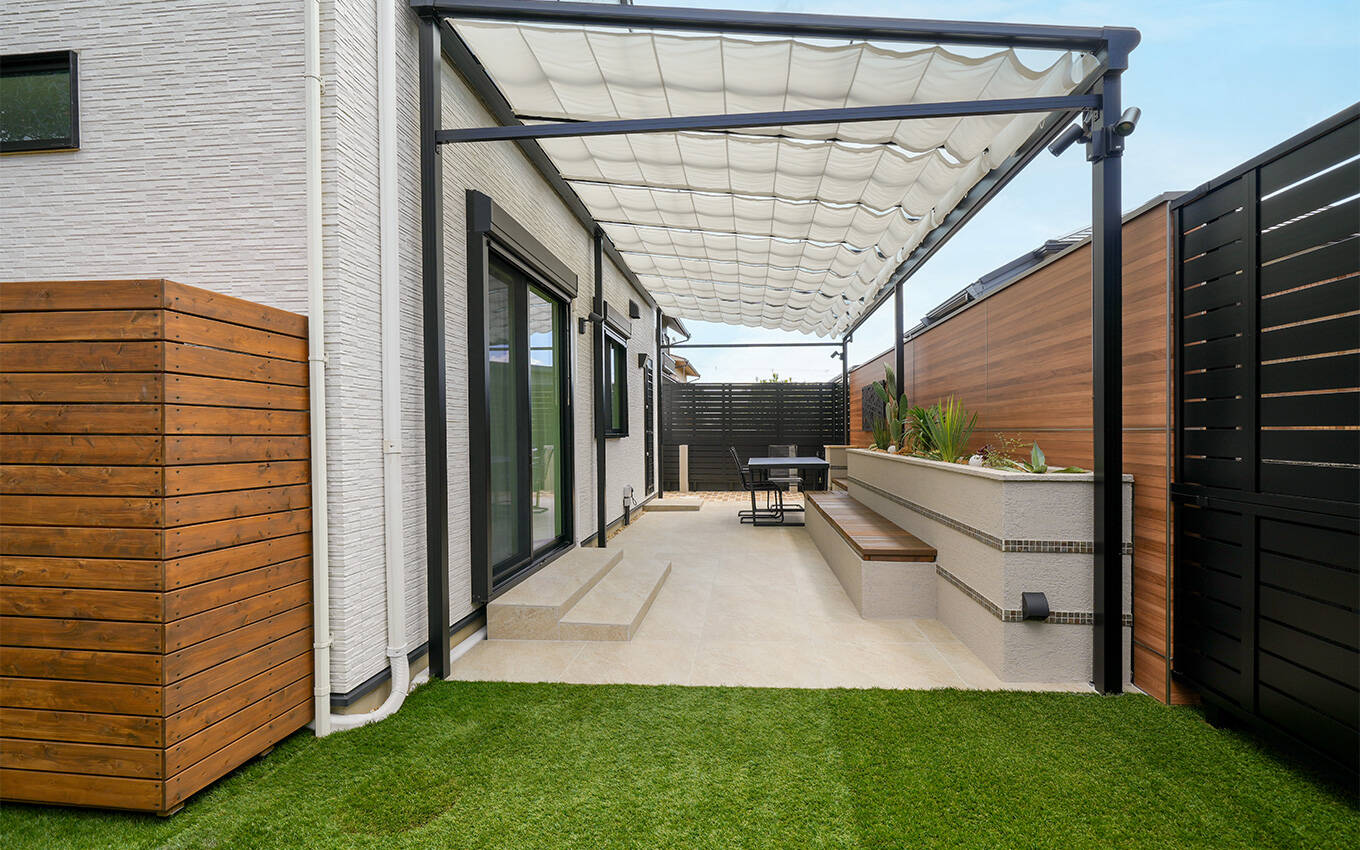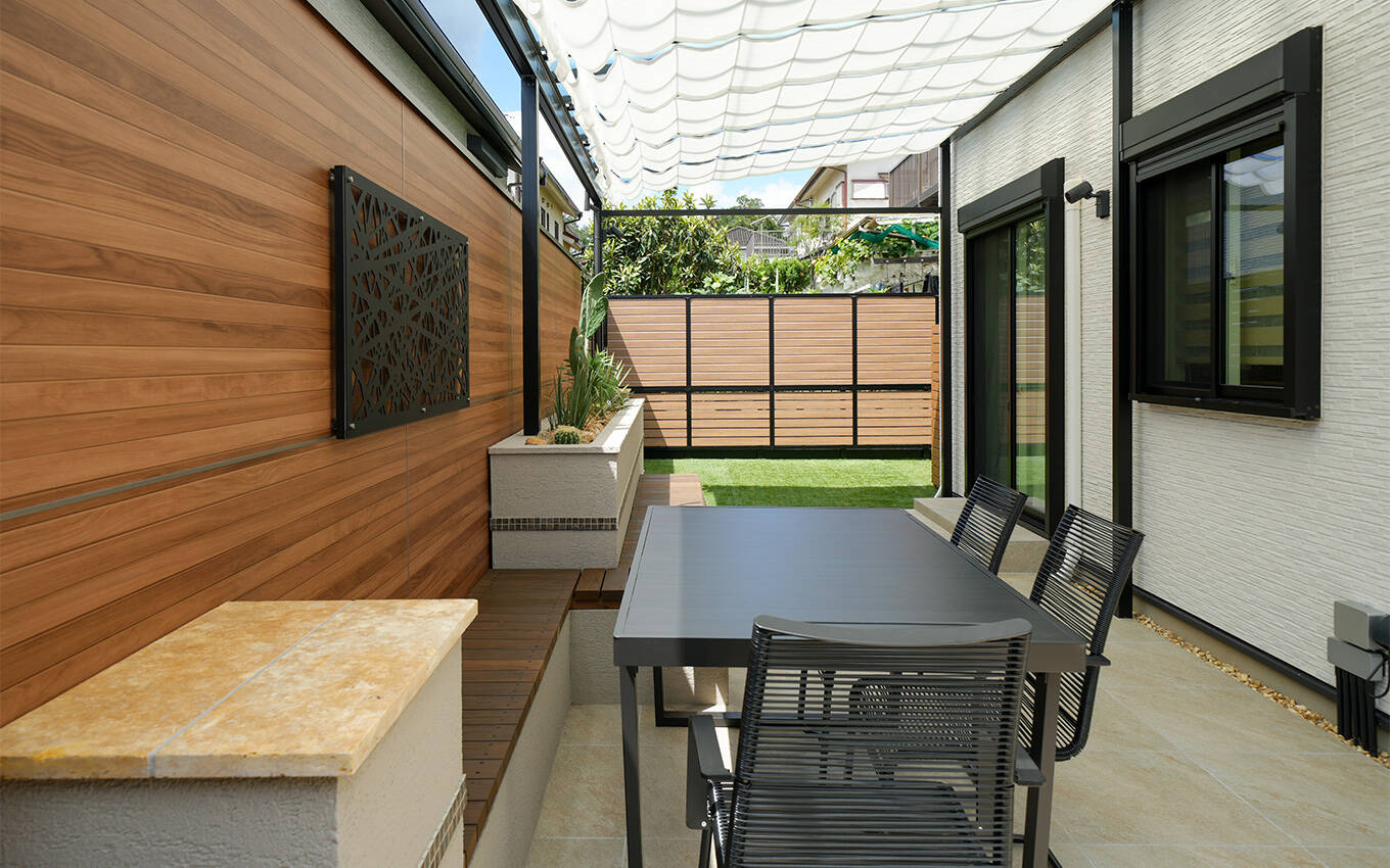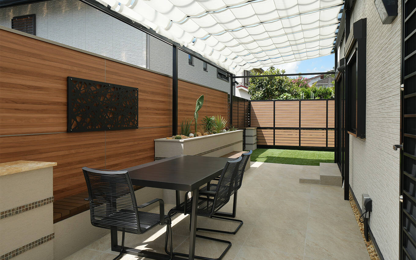 屋根つきテラスと高さのある目隠しフェンスで、おしゃれで安心な空間に生まれ変わりました!