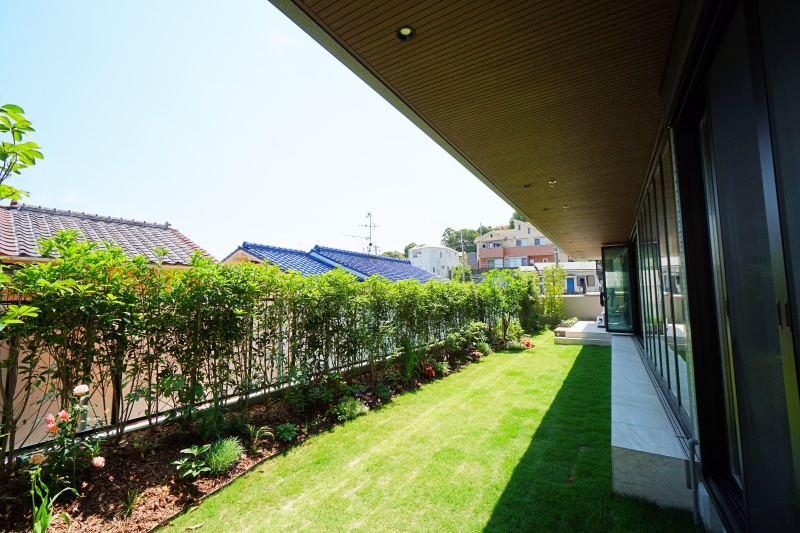 広い芝生スペースは、お孫さんが安心して走り回れるように。