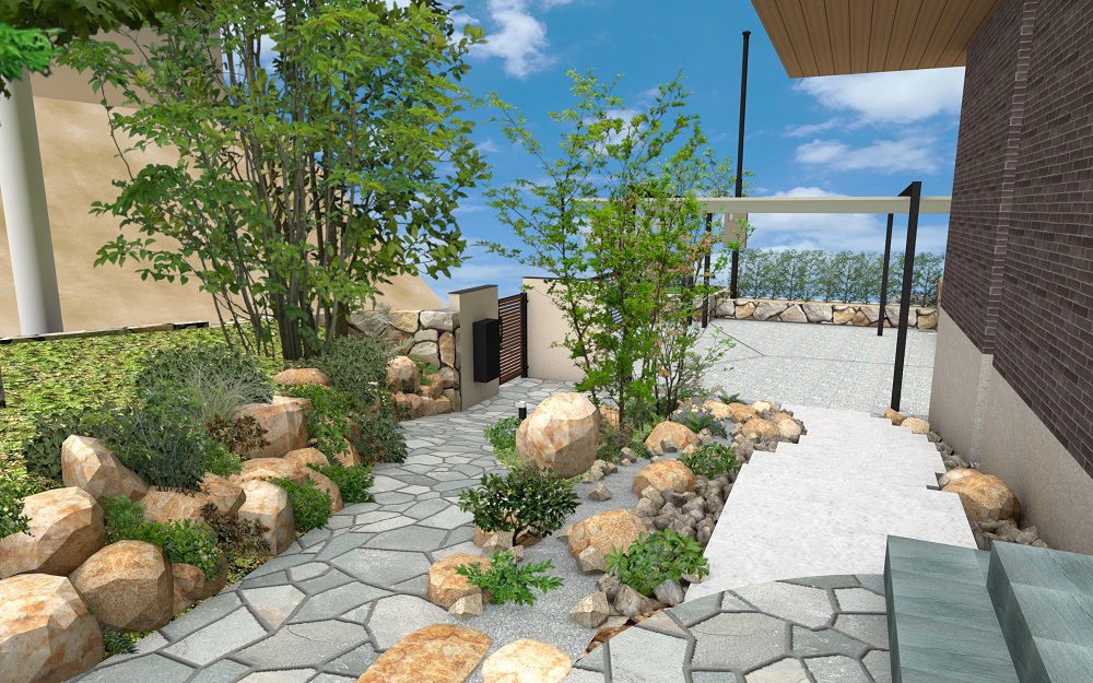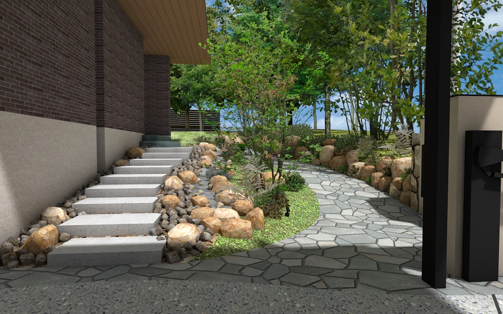 ■アプローチとロックガーデンがつくる、心地よい景色