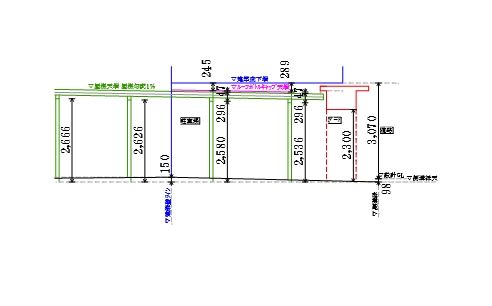 駐車場屋根や玄関まわりのRCは寸法を細かく図面に落とし込み、