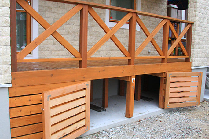 ・タイル貼り・レンガ敷き・ウッドデッキなどのテラス、見栄えもお庭に合うようにお選びいただけます。