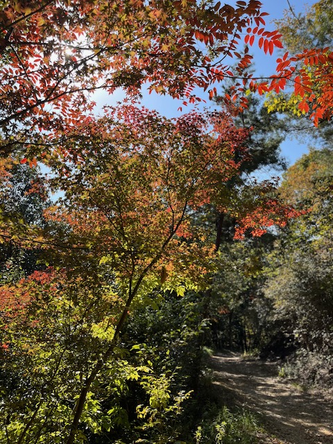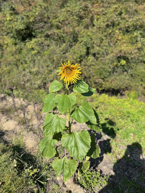 散歩中に見つけた季節外れのひまわりとイロハモミジの紅葉。