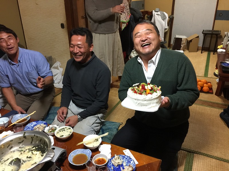 そして会の最後の締めくくりは1日早めの社長のお誕生日祝いで盛り上がりました。