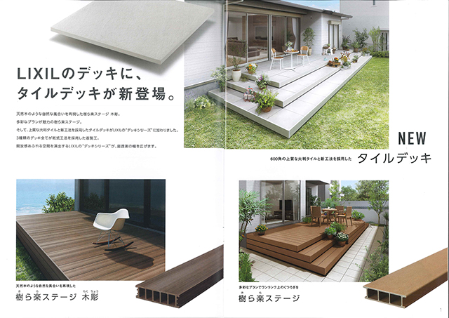 天然木のような自然な風合いが人気の樹ら楽ステージに新しく上質な大判デッキと新工法を採用したタイルデッキが加わりました。