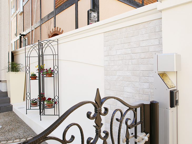 アイアンとモールディングの組合せが上品で清楚なイメージのお庭